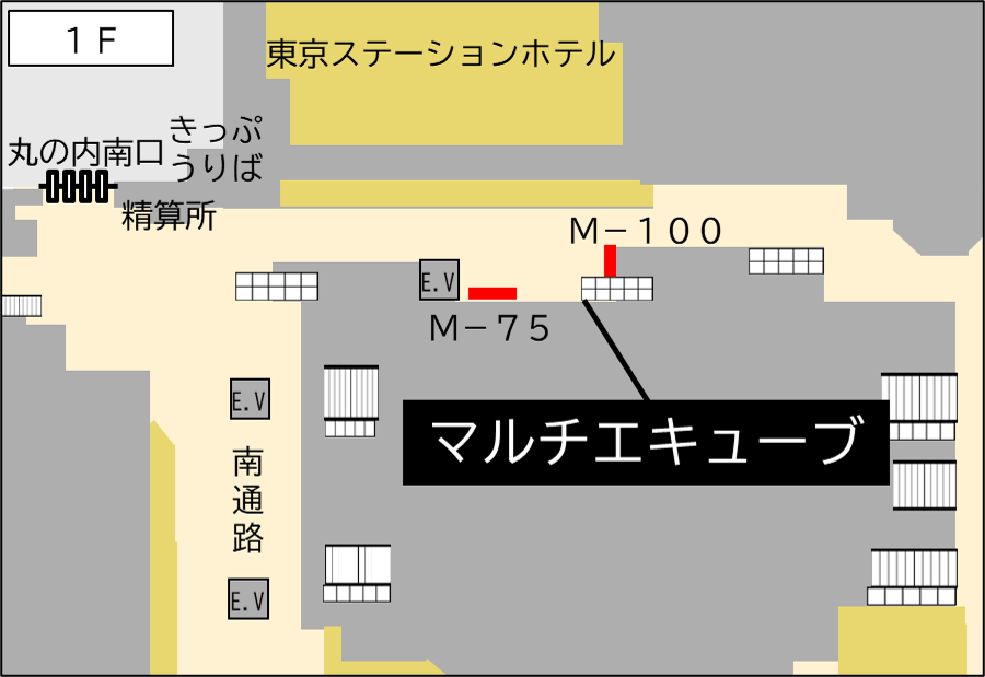 改札内 1F 丸の内南北通路 1・2線エレベーター付近(丸の内南口寄り)